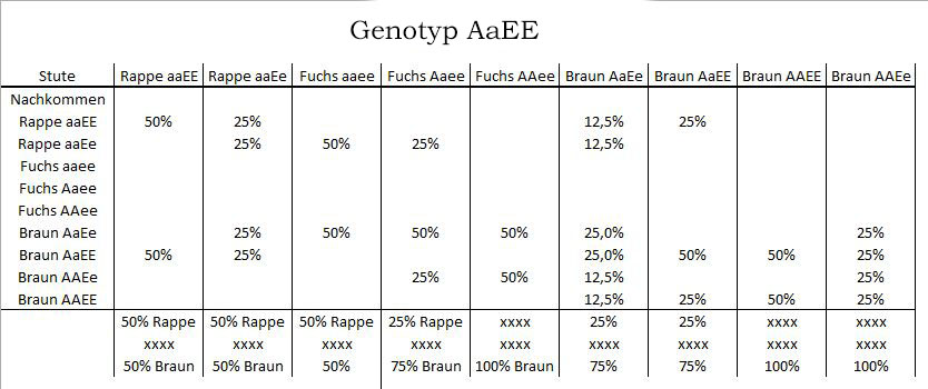 - Genotyp Fellfarbe AaEE