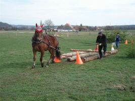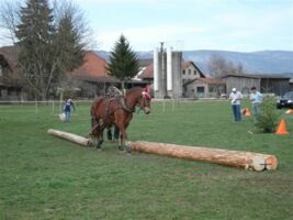 Beim Wenden auf dem Acker z.Bsp. werden die Pferde durch die Zugstränge eingeengt ohne Sicherheit der Landen zu haben. Sie müssen dem Druck standhalten, immer wieder im Zug stehen und warten oder stehen bleiben, wenn Maschinen, Geräte an und abgehängt werden. Das sind die wichtigsten Voraussetzungen für eine Teilnahme an Rückeprüfungen. Allerdings erzählt uns Messer, hat sich in den letzten Jahren einiges in der Turnierszene getan. Denn die heute erfolgreichen Teams trainieren die verschiedenen Hindernisse auf extra dafür eingerichteten Übungsplätzen. Wie auch beim Feldtest, beim Fahren und Reiten zu beobachten, findet eine ständige Professionalisierung und Spezialisierung der Freibergerszene statt.