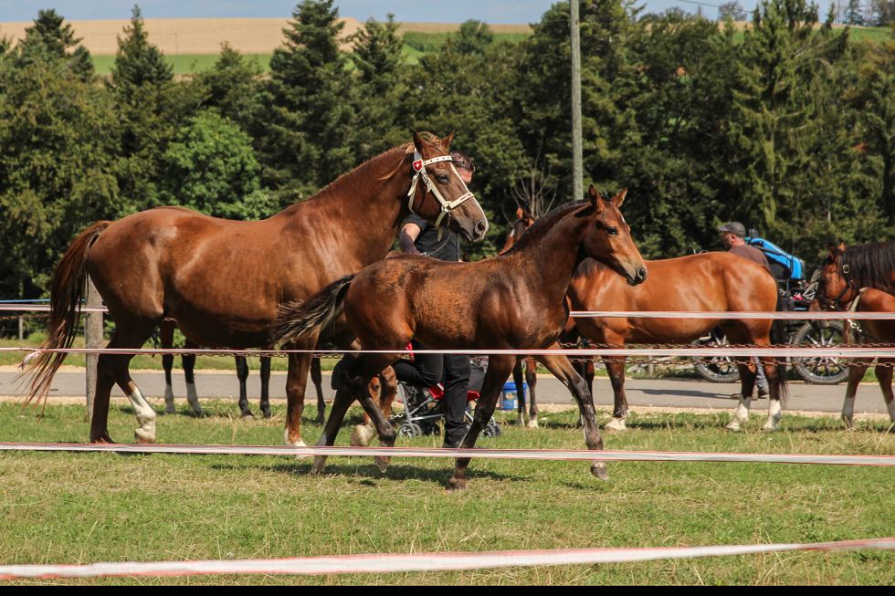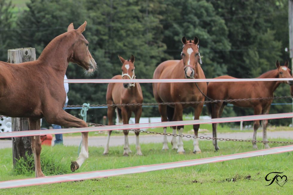 mit Stutfohlen Amarante du Seunet von Little Boy (Littoral/ Canada/ Haiti)