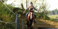 Vor dem Umbau des Hauses wollten wir den Reitplatz fertig haben um wenigstens zwischdurch unsere Freizeit genießen zu können. Im Sommer war es dann endlich so weit. Queshya war hochmotiviert und freute sich über jeden Ritt. Probleme durch die einjährige Arbeitspause gab es auch bei ihr nicht.