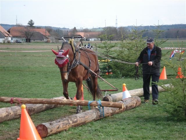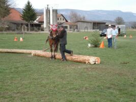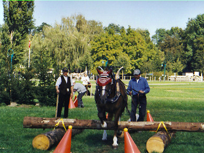 Beim Wenden auf dem Acker z.Bsp. werden die Pferde durch die Zugstränge eingeengt ohne Sicherheit der Landen zu haben. Sie müssen dem Druck standhalten, immer wieder im Zug stehen und warten oder stehen bleiben, wenn Maschinen, Geräte an und abgehängt werden. Das sind die wichtigsten Voraussetzungen für eine Teilnahme an Rückeprüfungen. Allerdings erzählt uns Messer, hat sich in den letzten Jahren einiges in der Turnierszene getan. Denn die heute erfolgreichen Teams trainieren die verschiedenen Hindernisse auf extra dafür eingerichteten Übungsplätzen. Wie auch beim Feldtest, beim Fahren und Reiten zu beobachten, findet eine ständige Professionalisierung und Spezialisierung der Freibergerszene statt.